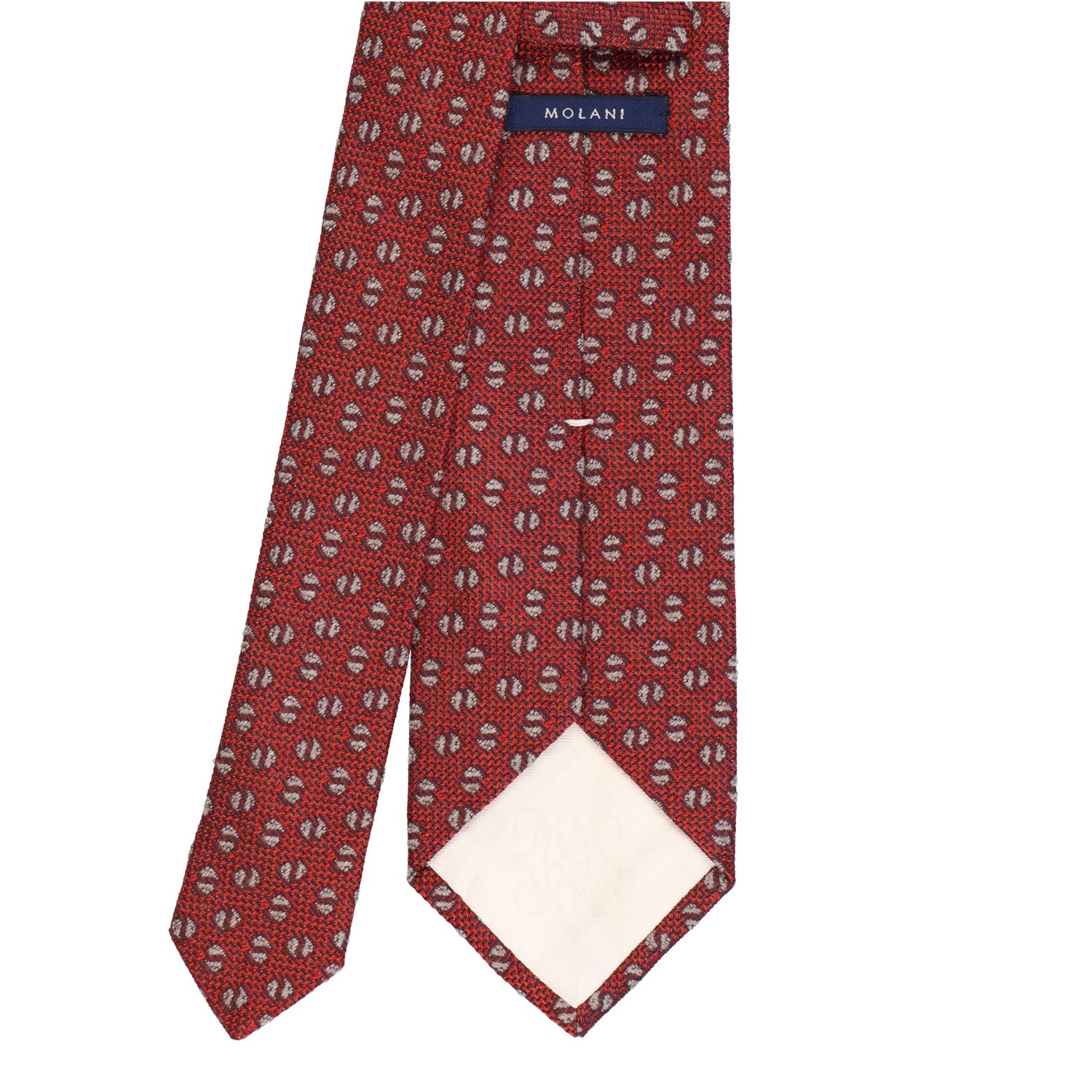 Ein Spiel aus Sonne und Struktur – diese Krawatte aus reiner Seide verbindet ein grafisches Muster mit feiner Grenadine-Webung. Der warme Terracottaton trifft auf elegante Akzente in Elfenbeinweiß – eine Kombination, die sowohl mediterrane Lässigkeit als auch klassische Raffinesse verkörpert.