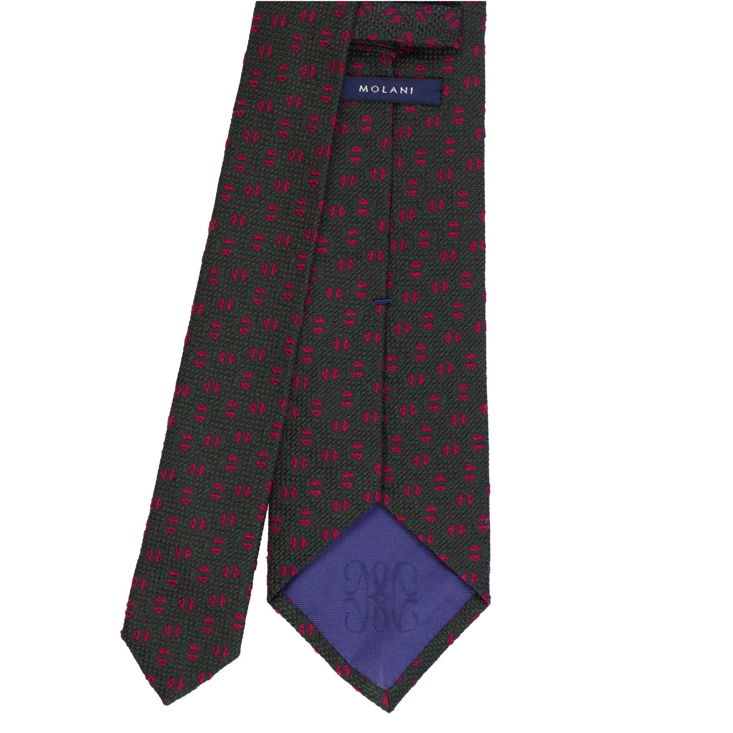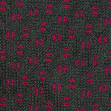 Ein Klassiker mit Charakter: Diese Krawatte kombiniert tiefes Grün mit einem lebendigen Muster in Rubinrot – ein stilsicherer Akzent für selbstbewusste Auftritte. Die regelmäßige solare-Struktur bringt Bewegung in das Design, ohne dabei an Eleganz zu verlieren.