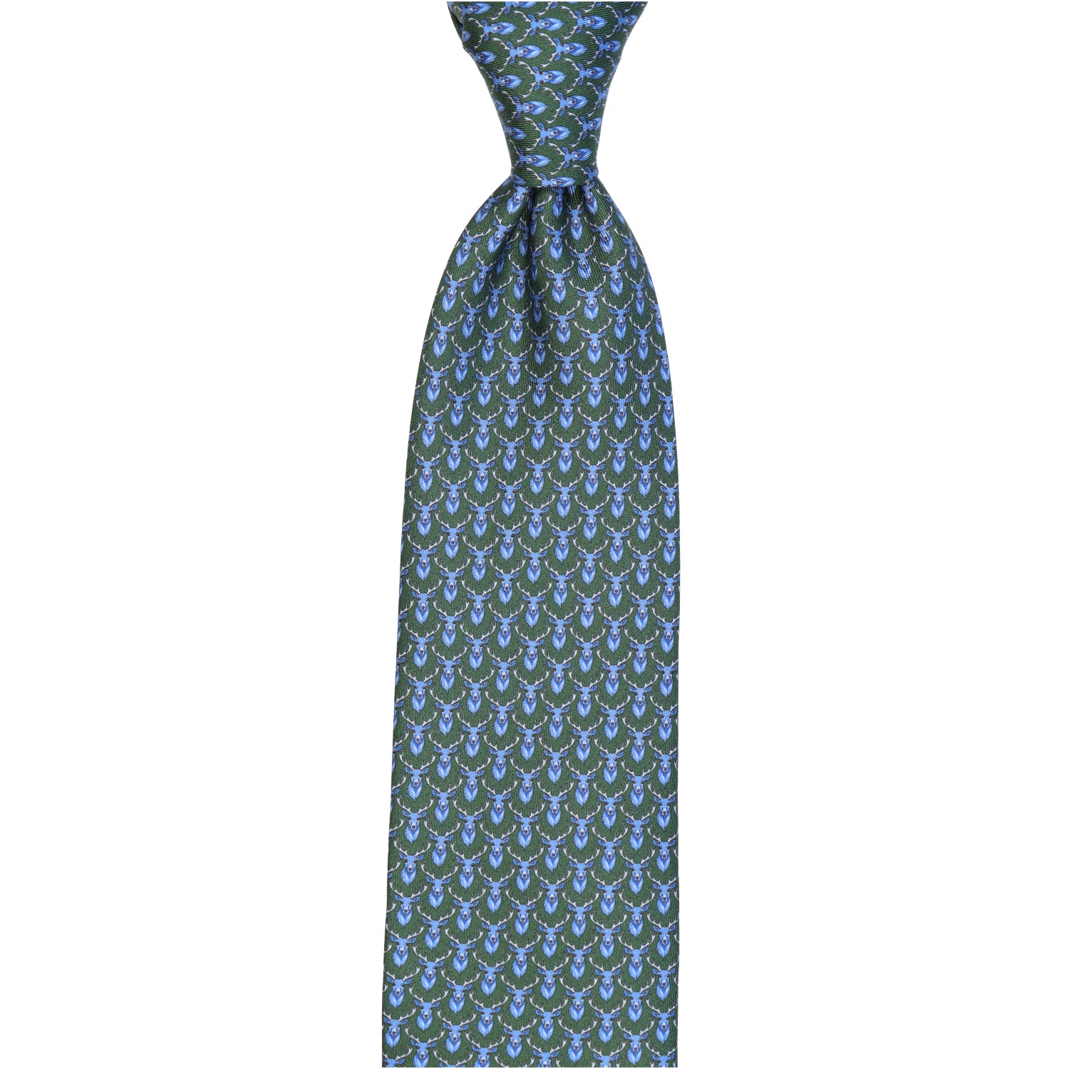 Diese Krawatte bringt augenzwinkernde Eleganz ins Spiel: Das fein gewebte Hirschmotiv auf tiefem Blaugrün ist ein moderner Blickfang für Traditionsliebhaber mit Sinn für Stil.