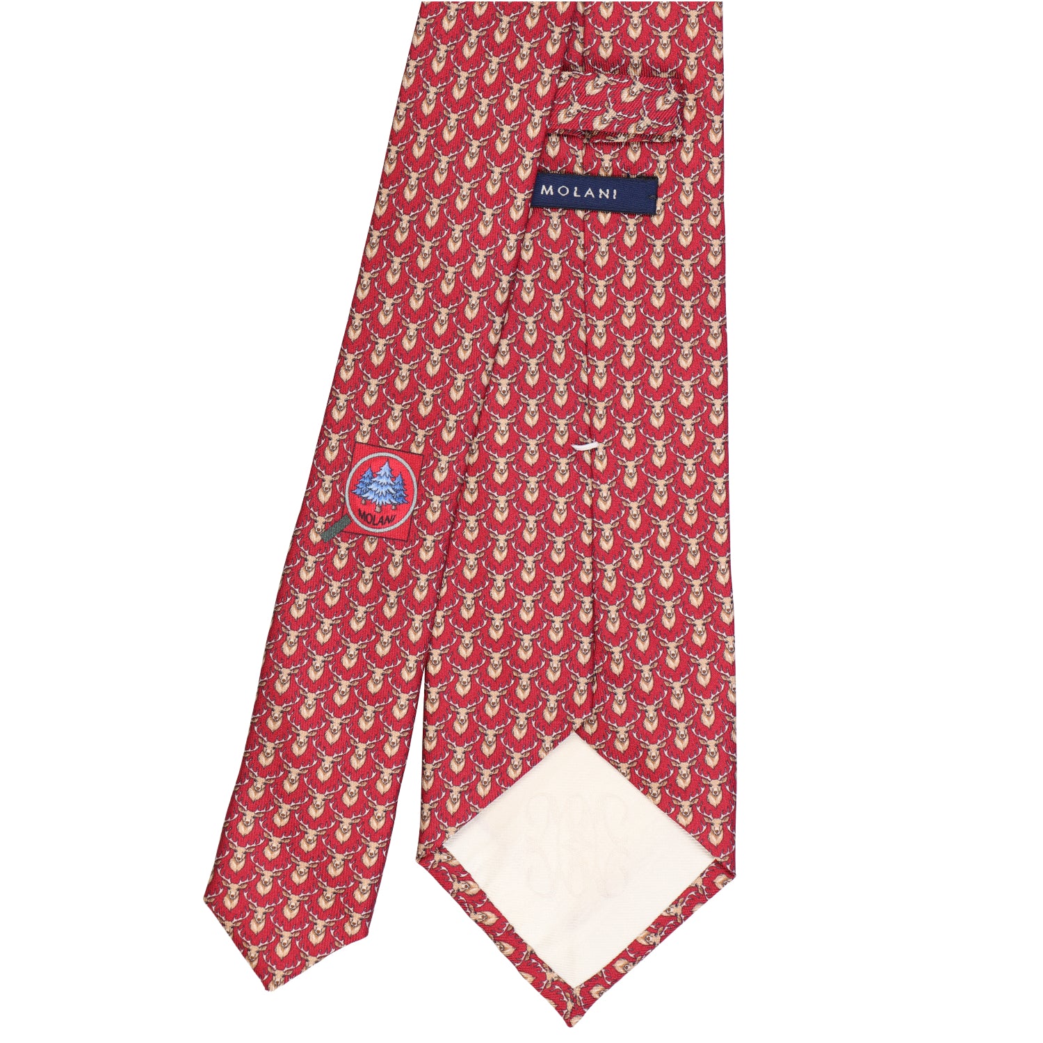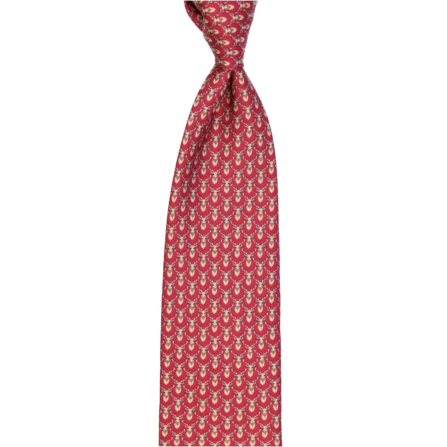 Ein echter Blickfang für Liebhaber außergewöhnlicher Motive: Diese Krawatte aus feinem Seidentwill zeigt ein klassisches Hirschmotiv in durchgängiger Wiederholung – detailreich gezeichnet, stilvoll inszeniert. Die kräftige Farbe in Wildkirschrot verleiht ihr eine warme, traditionelle Note mit modernem Augenzwinkern.
