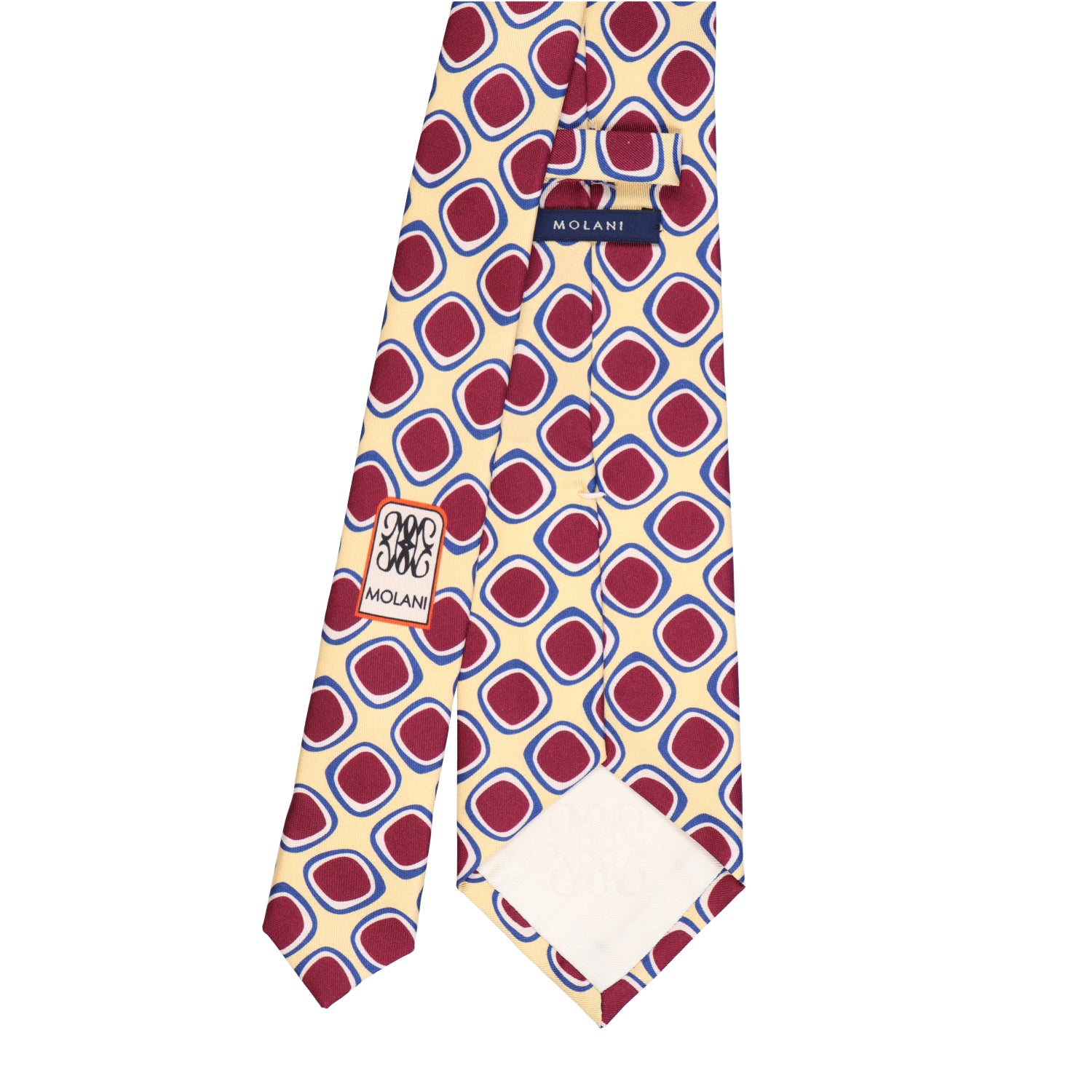 Ein Statement in sonnigem Gelb, kontrastiert mit warmem Bordeauxrot und kühlem Königsblau – diese Krawatte spielt mit der Formsprache der 60er und verleiht jedem Outfit eine kunstvolle Leichtigkeit.